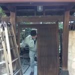 本日は、先日下見を行った老舗お団子屋さんの古材の発掘を行いました。