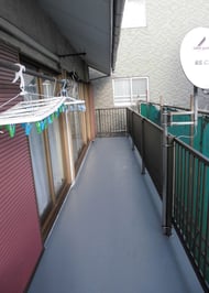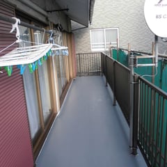 本日は、手摺を設置しました。先に固定していた支柱に対して手摺を取り付けているので、施工前の手摺とは比べ物にならないくらいしっかりと固定されています。手摺がぐらつかないという事は、安全性はもちろんですが、防水層にも悪影響を及ぼさないので大切な事なんです。
