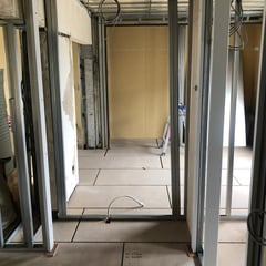 外周部壁下地と床上げが終了し、壁・天井下地の工事に入っています。