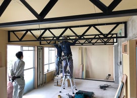 本日、天井トラスの設置を行いました。