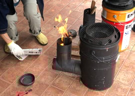 「エコストーブ」とは車のオイルが入っている大きな『ペイル缶』と呼ばれる大きな缶を細工したものです。