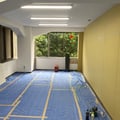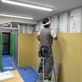 今回の工事では、会議室の間仕切に遮音材を入れています。床下や天井裏は壁で仕切らないため、完全な遮音とはいきませんが、生活レベルの声が聞き取りにくい程度には遮音できることが目的になります。