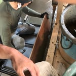 水洗いをする場所なので、この時点で勾配を取りながら施工を行います。