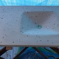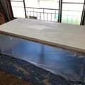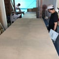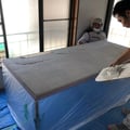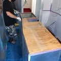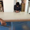 先日の床のREDに続いて今回の目玉の一つは客席と厨房の天板です。