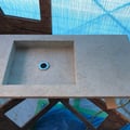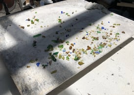 スタッコ調の左官仕上げになりますが、その中にシェフが自ら砕いた様々なお酒の瓶がちりばめられています。思いの詰まった素晴らしいカウンターが完成しました。