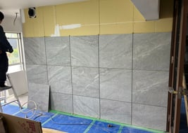 石張りは柄が重ならないよう仮に並べてから施工しています。