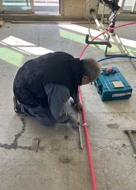 まずは墨出しと先行配管を行っています。