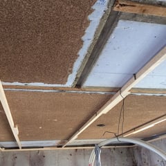 また、今回の物件は最上階ですので、天井にも断熱材を施工します。もともと打ち込みで断熱材が入っていますが、間仕切り位置が変更になるのとより性能を上げる目的で施工を行います。天井は少し下がりますが、ここは性能重視で。特に、夏の屋上からの熱気を抑える効果が期待できます。