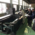 鉄骨の場合、現場での検査は、組み立てる際の接合部(溶接やボルト締め)の検査や立て方の精度などとなり、鋼材自体の検査は行なわないため、事前に工場まで行って検査を行います。