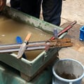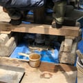 床作業の写真は、レントゲン台が動かない様に固定する架台の周辺処理を行っています。