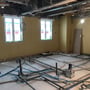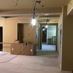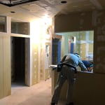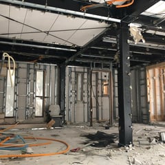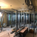 床、天井が貼れたフロアから間仕切り工事が始まっています。
