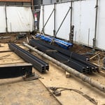 今回の地盤は杭が必要になります。20m近く杭を打設するため、現場溶接でつなぎ合せて打ち込んでいきます。