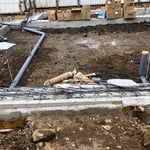 本日は、土間下の先行配管を行います。今回の計画では一階が駐車場になる為土間のコンクリートを打設します。その前に地中内に埋設される配管工事を行います。