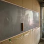 写真② エントランスの掲示板の下地です。以前は、画鋲やテープで掲示をしていたそうですが、より簡易で剥がした跡が残りずらい様に、今回はマグネットで掲示をします。