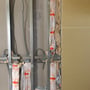 開口部はボードを貼る前に先行して鉛板を貼っていきます。ボードの継ぎ目にも鉛テープを貼って放射線が外部にもれない状態の下地を作ります。